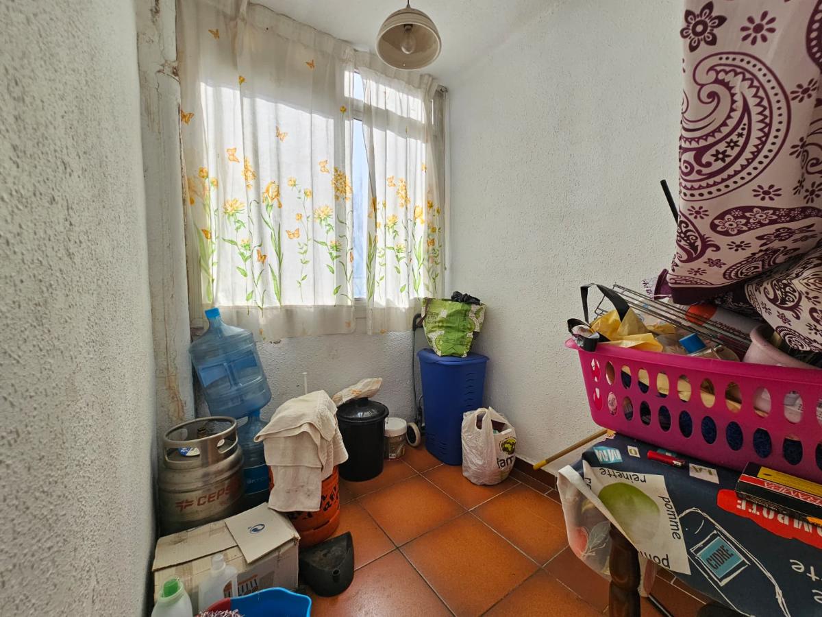 La vivienda dispone actualmente de dos dormitorios, aunque originalmente contaba con tres habitaciones. Existe la posibilidad de recuperar fácilmente la tercera estancia mediante la colocación de un sencillo tabique, lo que permite adaptar la distribución según las necesidades del futuro propietario. El inmueble cuenta además con baño completo, cocina independiente con galería, ideal como zona de lavado y almacenamiento adicional, y un amplio salón-comedor con salida a balcón, que aporta buena ventilación y luminosidad natural.