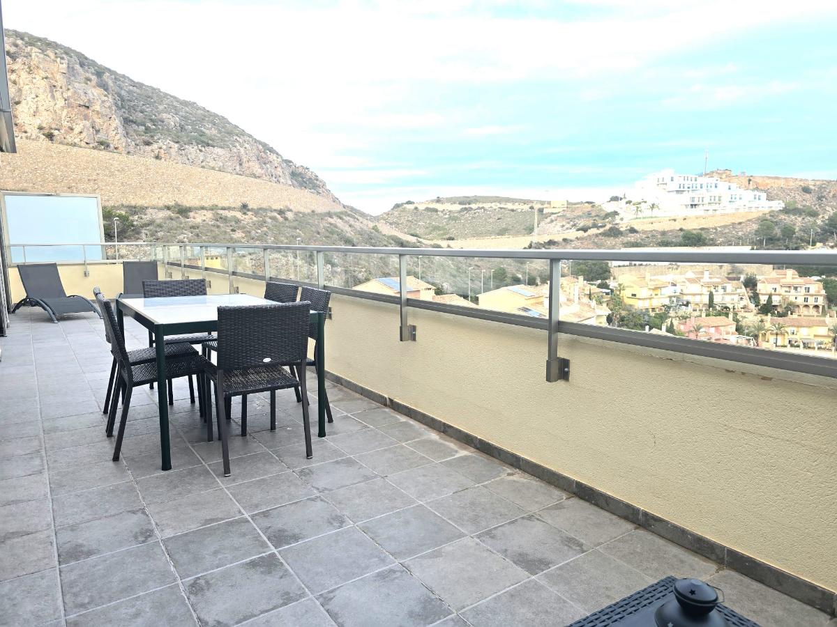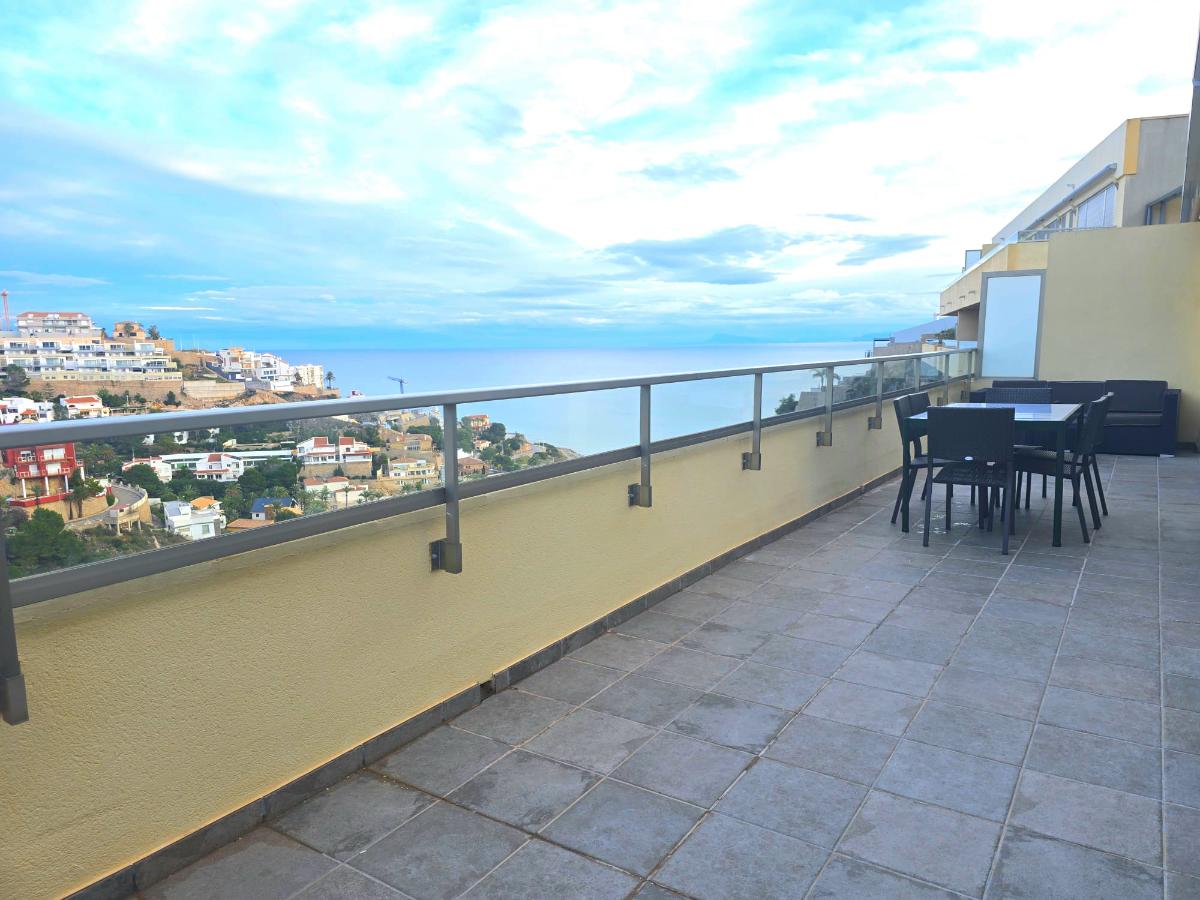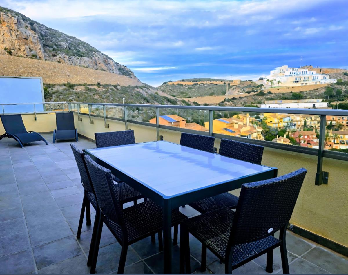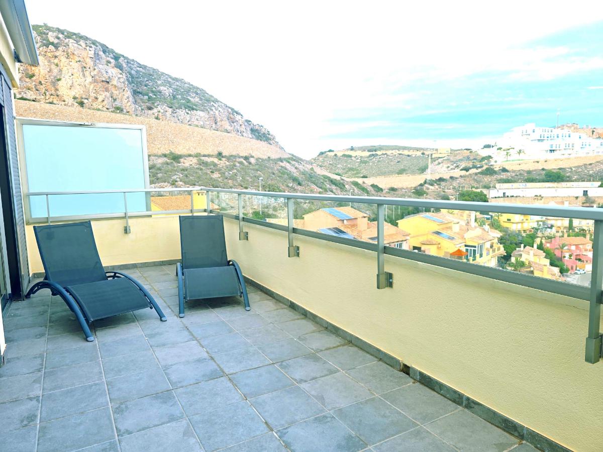 Destaca su fabulosa terraza de 34 m², a la que recae toda la vivienda, proporcionando independencia tanto por la parte delantera como trasera. Desde ella se disfrutan de impresionantes vistas a la montaña y al mar. Espacio amplio y versátil, ideal para mesas exteriores, toldos automáticos, barbacoa y para disfrutar tanto en verano como en primavera o invierno.