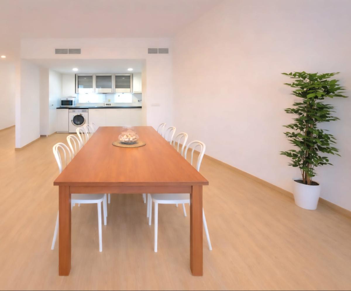 El interior ofrece un amplio salón-comedor con cocina abierta, creando un espacio moderno y funcional.