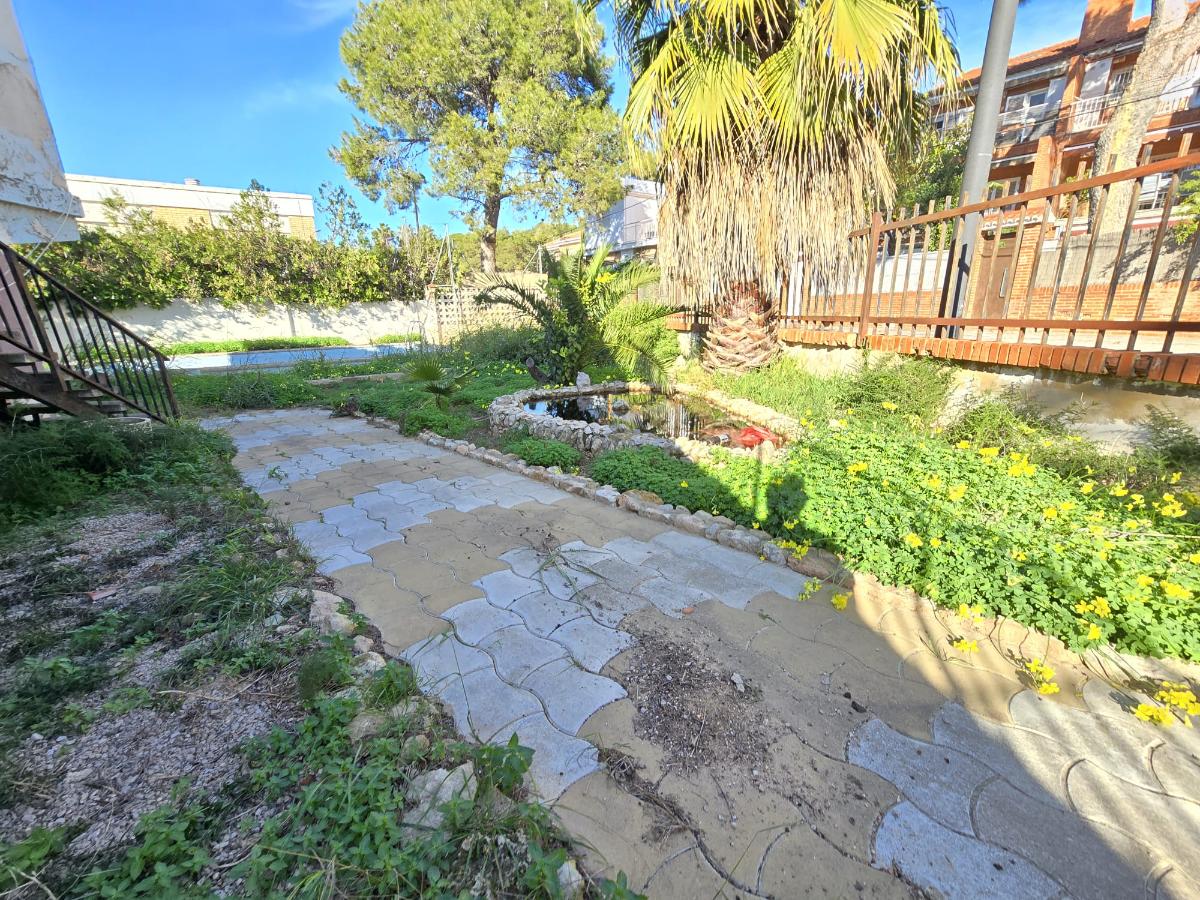 En este entorno se encuentra este chalet independiente para reforma integral, situado sobre una parcela esquinera de 694 m², amplia y muy privada. La vivienda cuenta con 237 m² construidos, distribuidos en dos plantas, y conserva elementos muy valorados como garaje cubierto, terrazas, paellero, galería y baño exterior, además de un baño interior completo con ducha.