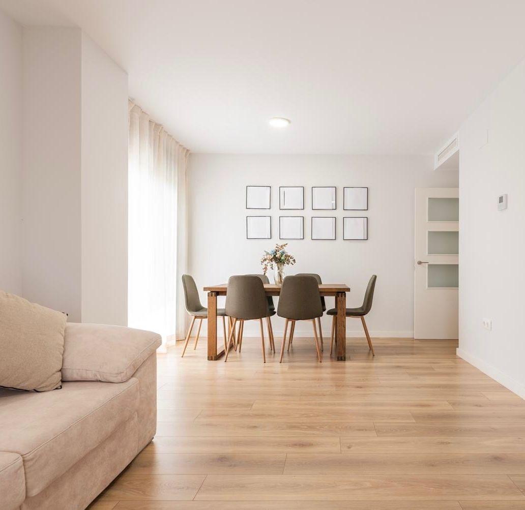 Suelos de parquet y gres porcelánico, carpintería lacada en blanco, cerramientos de aluminio con cristales bajo emisivos, puerta blindada y climatización por aerotermia (frío/calor). Certificación energética B.